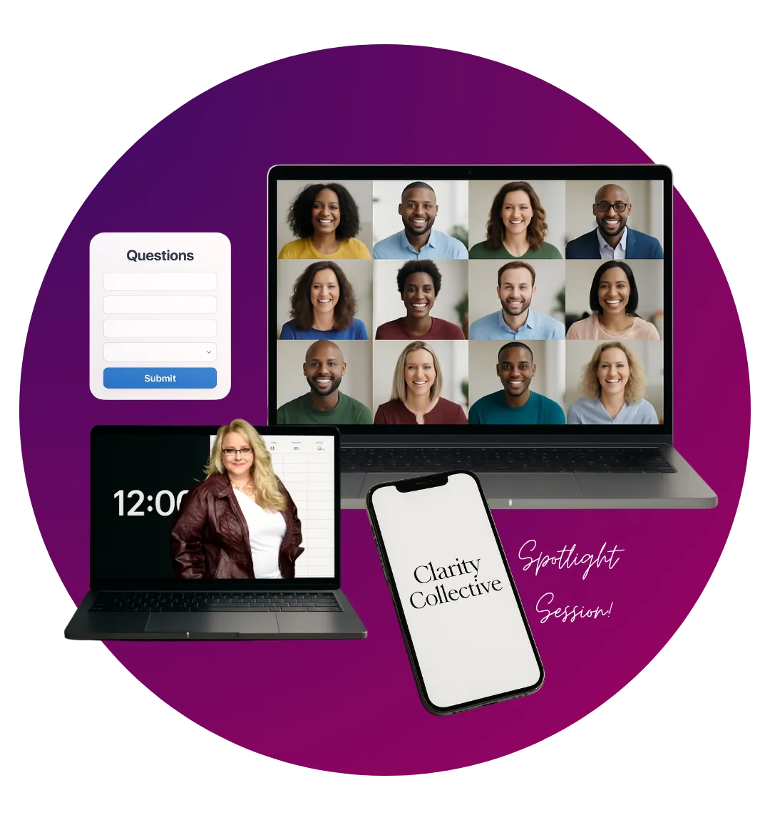 Not at all. Clarity Collective is built to avoid the time-wasting, one-size-fits-all format most group programs use. You’ll only attend the calls that are relevant to you, ask your question ahead of time, and get a direct, personalized response—no waiting, no fluff.